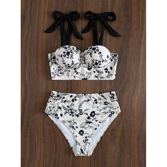 Laser Cutting Flower Hollow Flared Skirt Swimsuit Set