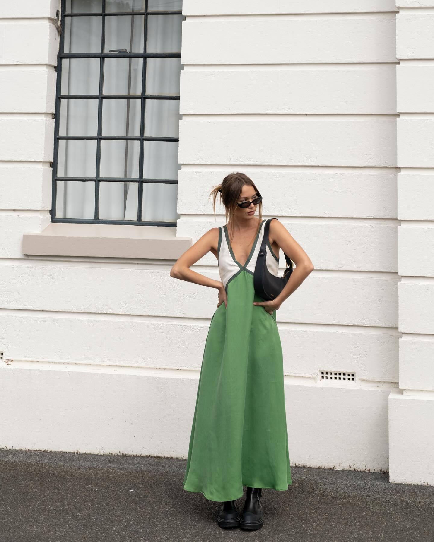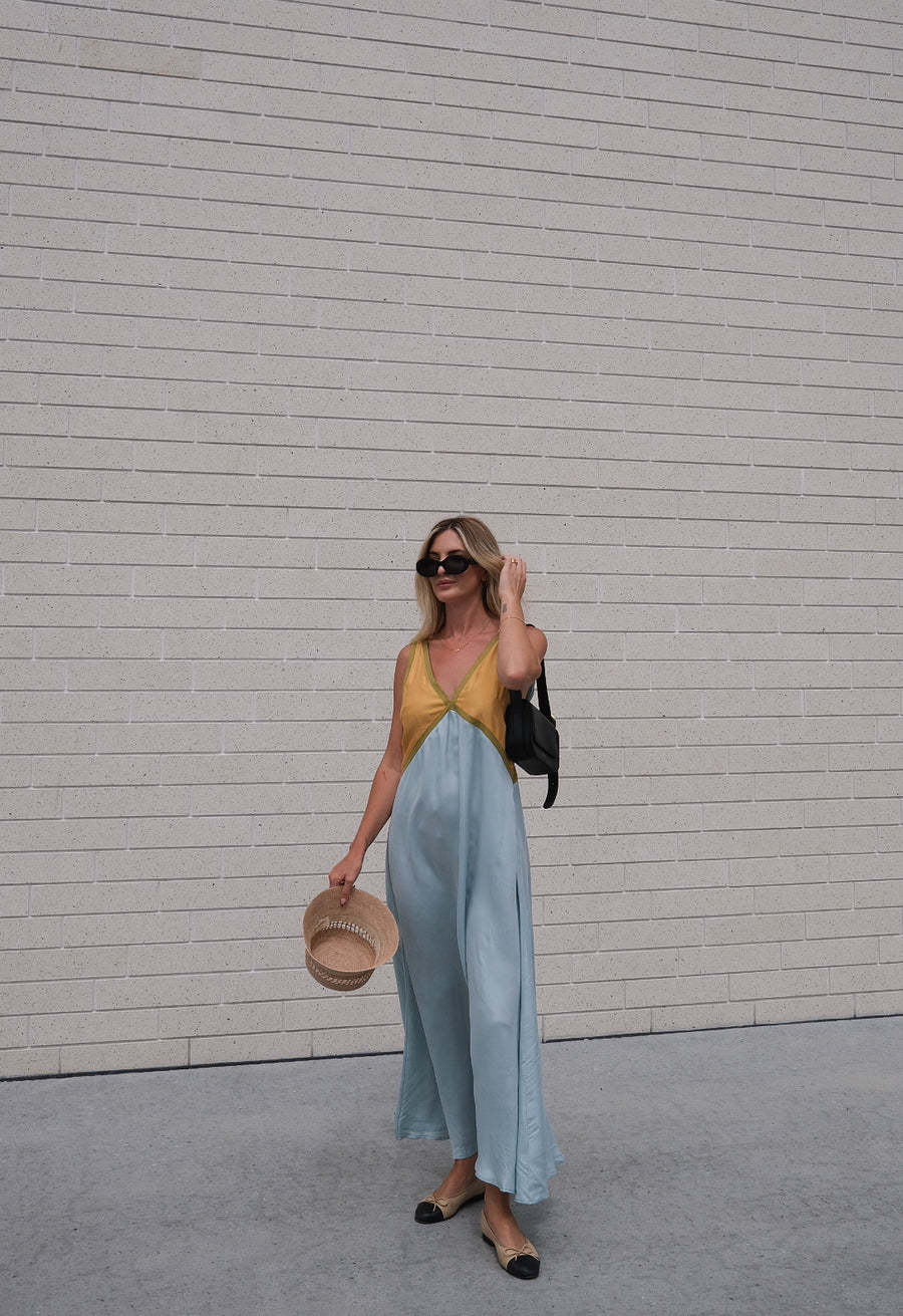 Contrast Color V-neck Cupro silk Swing Dress