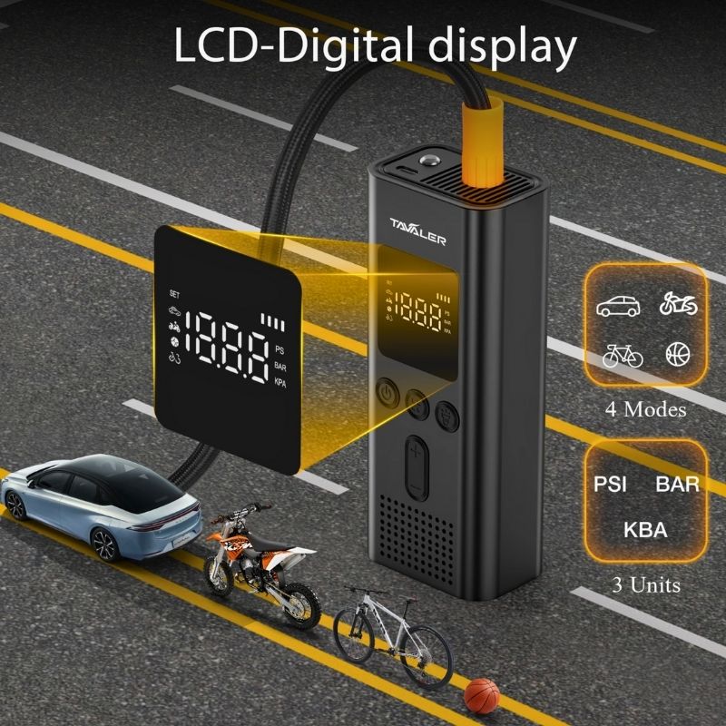 Equipped with a 4000mAh rechargeable battery, digital LCD screen, auto shut-off, and LED light, it’s designed to make inflation safer, easier, and smarter. Its compact body fits in your glove box or backpack, making it your ultimate companion for emergency refills or routine top-ups — for cars, bikes, scooters, balls, and more.